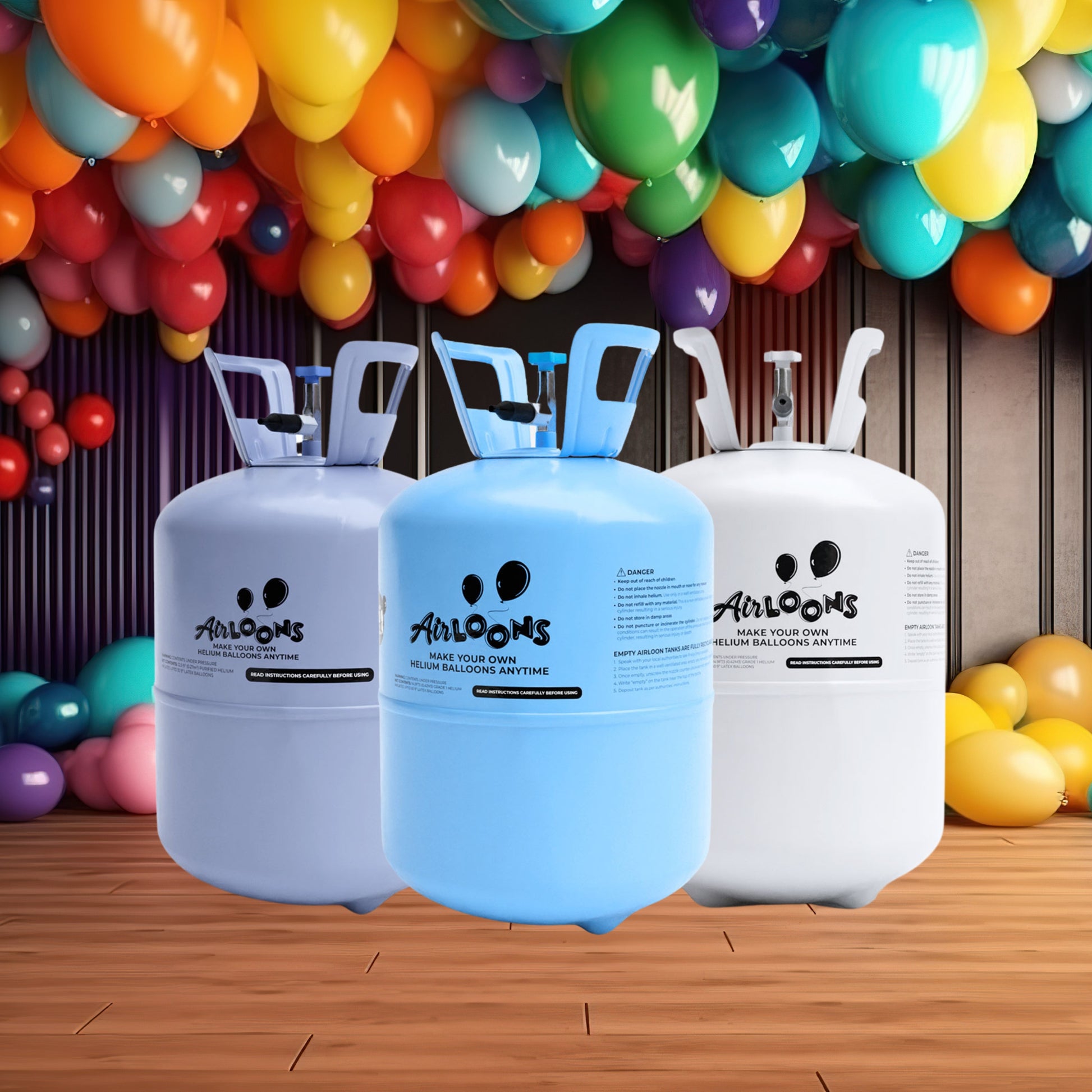 • Safe to Use - Our helium tanks are rigorously tested and certified, ensuring that you can use them with confidence. Safety features such as built-in pressure gauges and easy-to-use inflation nozzles provide peace of mind during your celebrations.